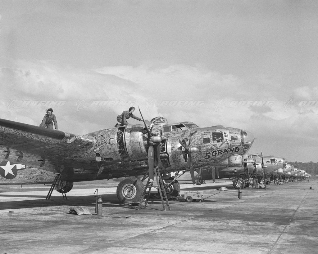 The 5,000th B-17 built after Pearl Harbor carried the signatures of all the people who built her in the Boeing Seattle Plant 2.