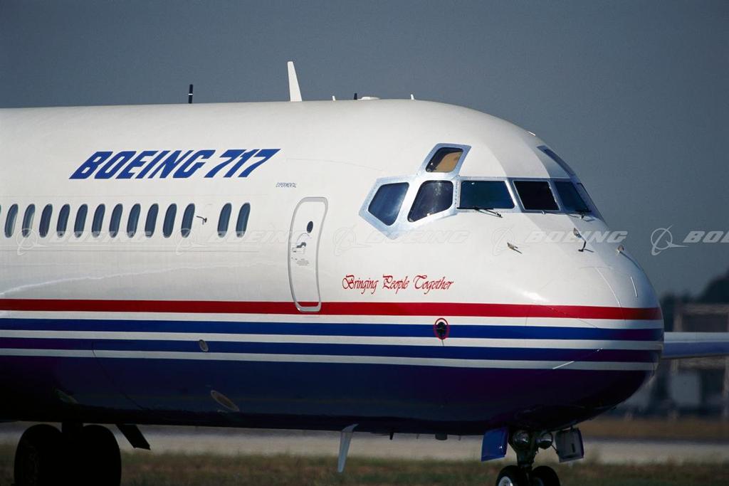 The 717 is a full-size twinjet designed specifically for the short-range, 100-seat regional airline market and is a very efficient and exceptionally quiet airplane. Its advanced technologies and rugged simplicity of design allow a quick turnaround time at a wide range of airports, so crew and passengers spend less time on the ground. It makes effective use of today's technology to lower operating costs, reduce noise and emissions, and provide big jet comfort. The airplane, formerly MD-95, was designated the Boeing 717 following the merger of McDonnell Douglas and The Boeing Company in 1997. In early 2005, after careful assessment of the challenging 100-seat market, Boeing announced that it will conclude 717 production in 2006 after delivering on current customer commitments.