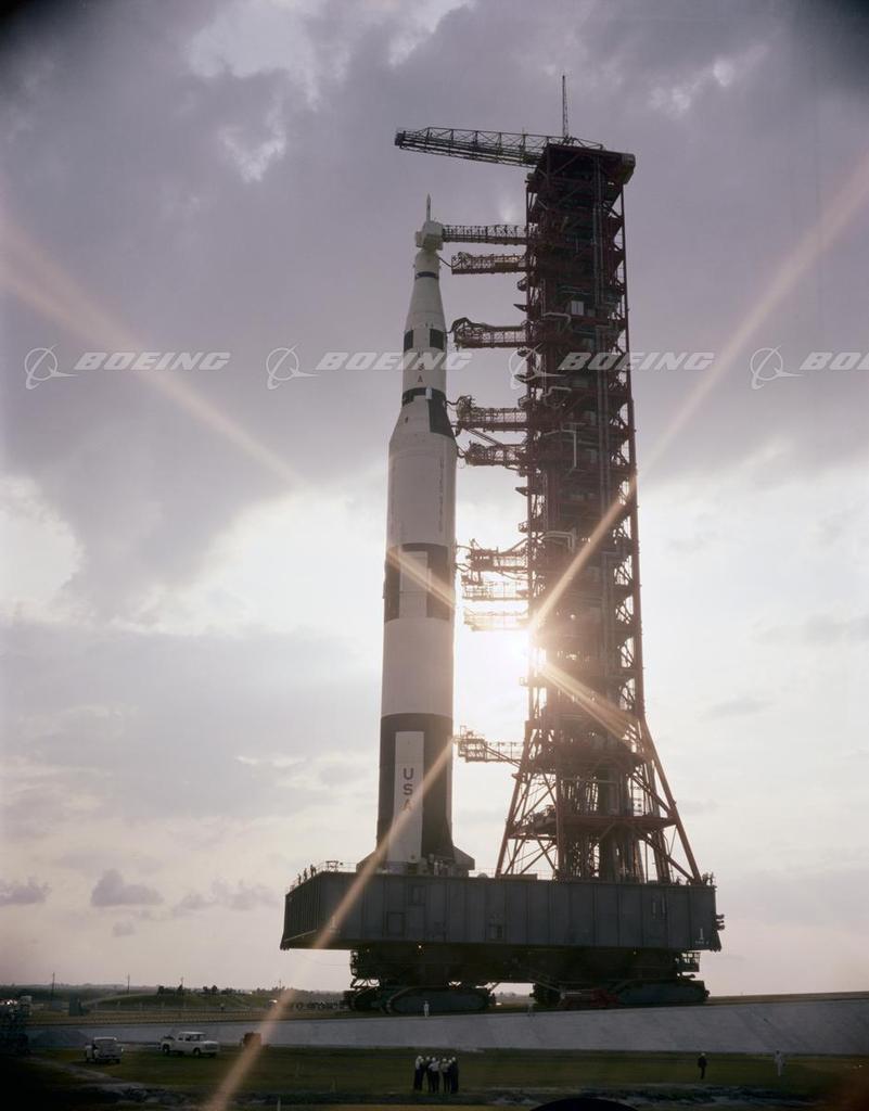 The 363-foot-tall Saturn V rocket first was launched Nov. 9, 1967 and was the launch vehicle for Project Apollo and Skylab. Boeing built the rocket’s massive S-1C first stage, North American the S-II second stage, and McDonnell Douglas the S-IVB third stage. Rocketdyne built the first stage’s five F-1 engines and the J-2 engine for the rocket’s second and third stages. Twelve Saturn Vs were used on the Apollo moon exploration program, and the 13th, in 1973, placed the McDonnell Douglas Skylab into Earth orbit. Two were placed in storage.
