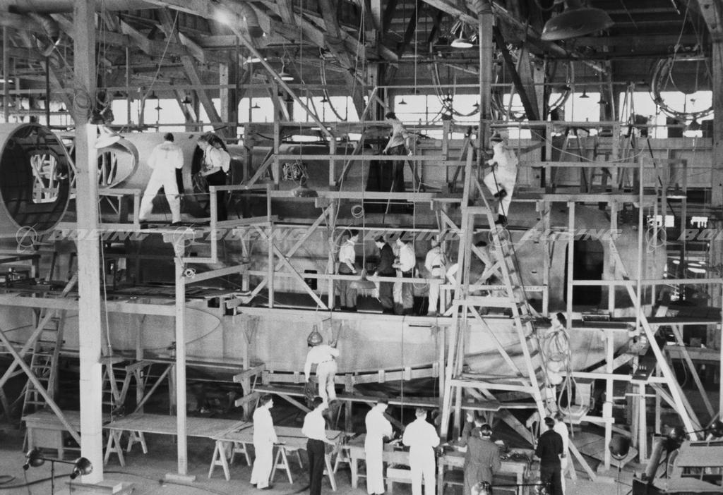 The whale-shaped Boeing Model 314 flying boat took cruise ship elegance into the air. Luxurious amenities aboard the Clipper included a stylish lounge, a dining salon, and a bridal suite. At 106 feet long with a 152-foot wingspan, it was the largest passenger transport in its time. At night, 74 seats converted into 40 bunks. It first flew in 1938 and on June 28, 1939, made the first scheduled transatlantic flight. In 1943, President Franklin Delano Roosevelt celebrated his birthday on a Model 314 airplane, flying to Casablanca and back, becoming the first U.S. president to fly while in office.