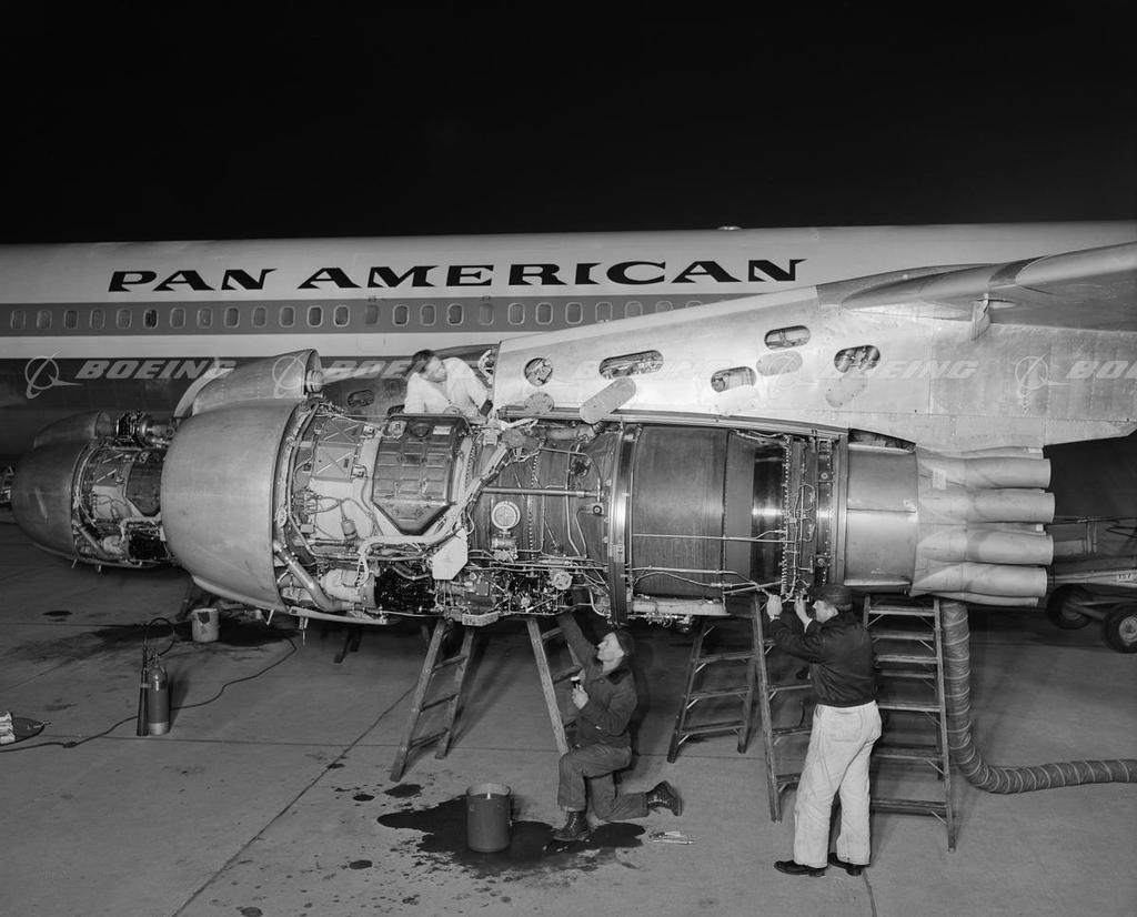 The first commercial 707s, labeled the 707-120 series were powered by early Pratt & Whitney turbojet engines. These initial 707s had range capability that was barely sufficient for the Atlantic Ocean. Boeing quickly developed the larger 707-320 Intercontinental series with a longer fuselage, bigger wing and higher-powered engines. With these improvements, which allowed increased fuel capacity from 15,000 gallons to more than 23,000 gallons, the 707 had truly intercontinental range of over 4,000 miles in a 141-seat (mixed class) seating configuration.