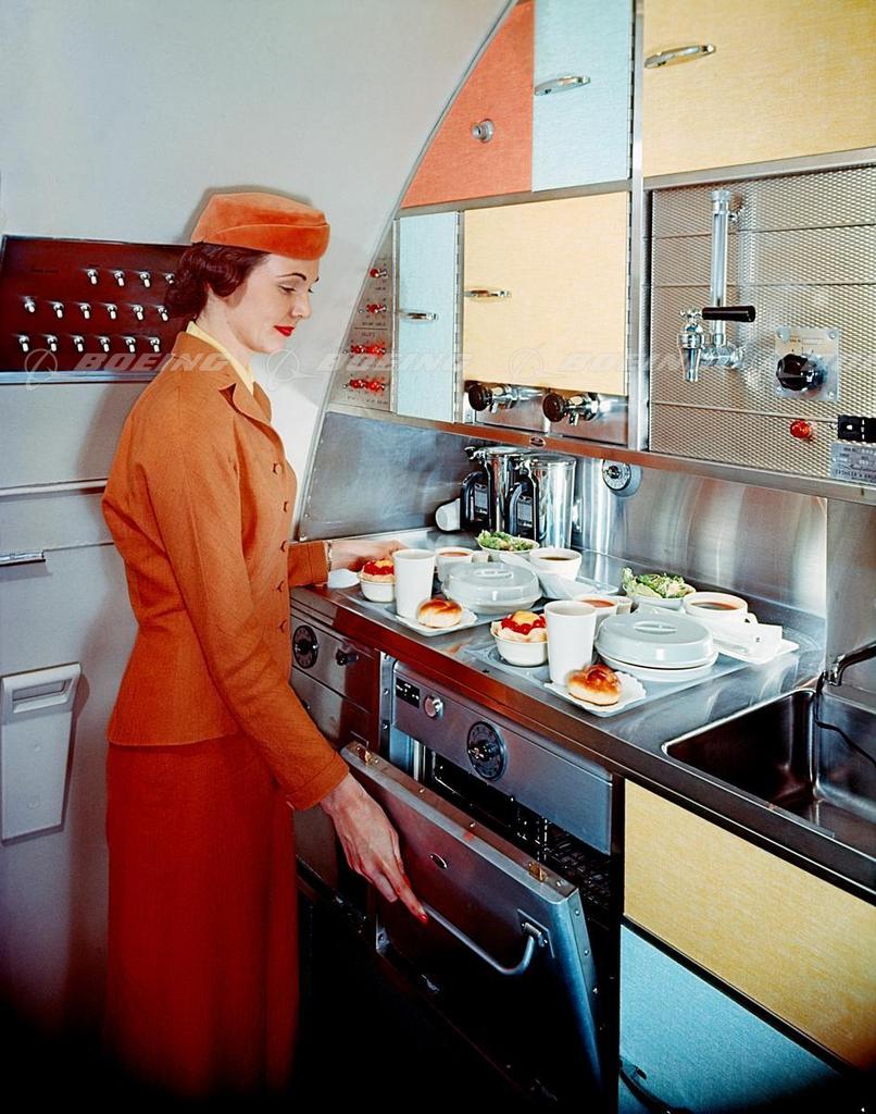 The 707's width and the 100-foot length made it the largest passenger cabin in the air in the late 1950s. Placement of its more than 100 windows allowed airlines to rearrange seats. Location of passenger doors on the left side, at the front and at the rear of the cabin, became standard for subsequent Boeing jets. The exteriors of the 707 and its competitor, the DC-8, were almost identical, but the 707 wing had more sweepback, so it could fly about 20 mph faster.