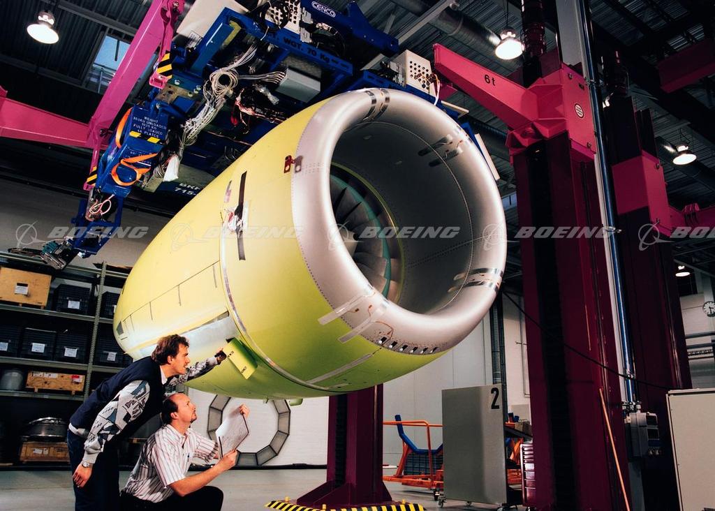 The BMW Rolls-Royce BR715 engine was the sole powerplant on the Boeing 717-200 twinjet. The engine, shown being built at the manufacturer's plant in Dahlewitz, near Berlin, had completed a 150-hour endurance test at the time this photo was taken.