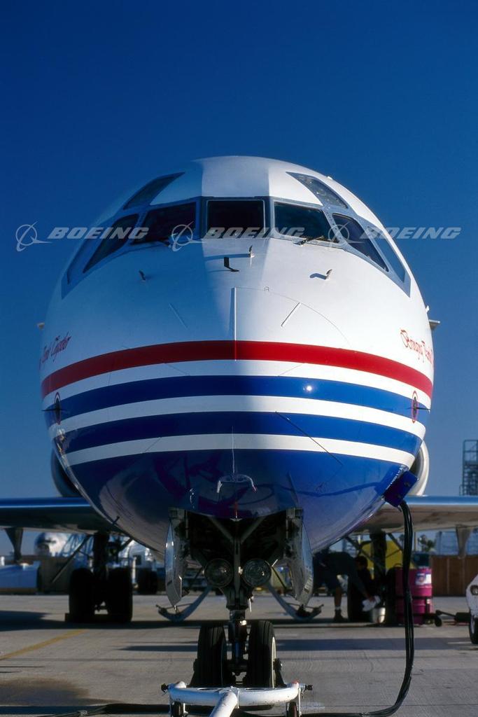 The 717-200 is a full-size twinjet designed specifically for the short-range, 100-seat regional airline market and is a very efficient and exceptionally quiet airplane. Its advanced technologies and rugged simplicity of design allow it quick turnaround time at a wide range of airports, so crew and passengers spend less time on the ground. It makes effective use of today's technology to lower operating costs, reduce noise and emissions, and provide big jet comfort. The airplane, formerly MD-95, was designated the Boeing 717 following the merger of McDonnell Douglas and The Boeing Company in 1997. In early 2005, after careful assessment of the challenging 100-seat market, Boeing announced that it will conclude 717 production in 2006 after delivering on current customer commitments.
