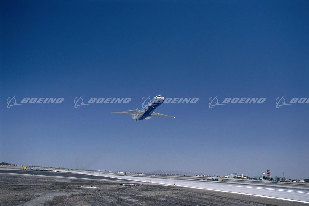 The 717 is a full-size twinjet designed specifically for the short-range, 100-seat regional airline market and is a very efficient and exceptionally quiet airplane. Its advanced technologies and rugged simplicity of design allow it quick turnaround time at a wide range of airports, so crew and passengers spend less time on the ground. It makes effective use of today's technology to lower operating costs, reduce noise and emissions, and provide big jet comfort. The airplane, formerly MD-95, was designated the Boeing 717 following the merger of McDonnell Douglas and The Boeing Company in 1997. In early 2005, after careful assessment of the challenging 100-seat market, Boeing announced that it will conclude 717 production in 2006 after delivering on current customer commitments.