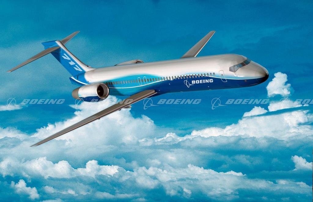 This 717 is pictured in the majestic shades of blue and white inspired by the Earth and sky that highlight the new look Boeing is adopting as its Commercial Airplanes brand colors. The new Boeing livery draws its inspiration from the Boeing “Horizon” ad campaign, with a paint scheme that flows along the fuselage in lines reminiscent of the earthÆs gently curved horizon. The colors û whites, fresh blues and aqua û are suggestive of the colors of our planet as it appears from space. The new livery is unique from other paint designs in that there are only two hard lines on the airplaneÆs design û the top and bottom of the “horizon” line. All other colors in the livery blend seamlessly across the fuselage and wings. Boeing painters used an automotive painting technique called “fading” to attain this effect.