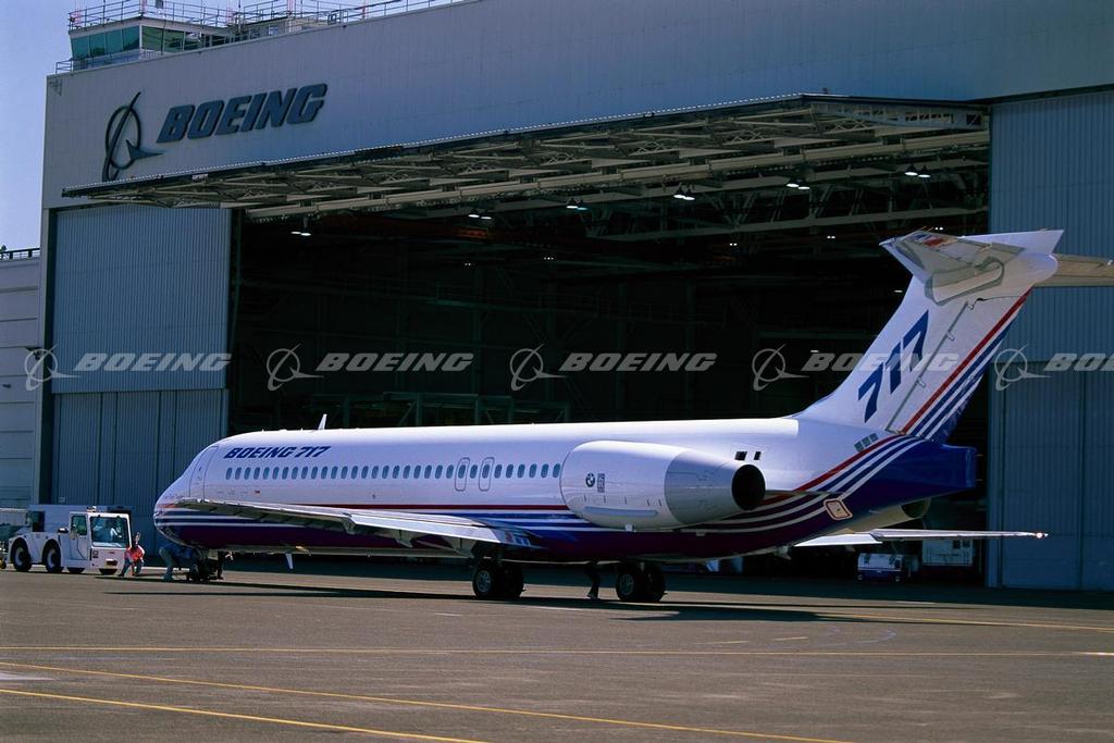 The 717 is a full-size twinjet designed specifically for the short-range, 100-seat regional airline market and is a very efficient and exceptionally quiet airplane. Its advanced technologies and rugged simplicity of design allow it quick turnaround time at a wide range of airports, so crew and passengers spend less time on the ground. It makes effective use of today's technology to lower operating costs, reduce noise and emissions, and provide big jet comfort. The airplane, formerly MD-95, was designated the Boeing 717 following the merger of McDonnell Douglas and The Boeing Company in 1997. In early 2005, after careful assessment of the challenging 100-seat market, Boeing announced that it will conclude 717 production in 2006 after delivering on current customer commitments.