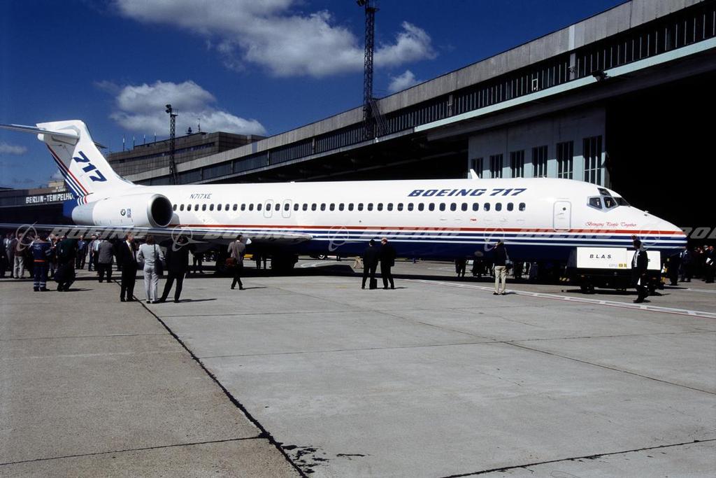 The 717 is a full-size twinjet designed specifically for the short-range, 100-seat regional airline market and is a very efficient and exceptionally quiet airplane. Its advanced technologies and rugged simplicity of design allow it quick turnaround time at a wide range of airports, so crew and passengers spend less time on the ground. It makes effective use of today's technology to lower operating costs, reduce noise and emissions, and provide big jet comfort. The airplane, formerly MD-95, was designated the Boeing 717 following the merger of McDonnell Douglas and The Boeing Company in 1997. In early 2005, after careful assessment of the challenging 100-seat market, Boeing announced that it will conclude 717 production in 2006 after delivering on current customer commitments.