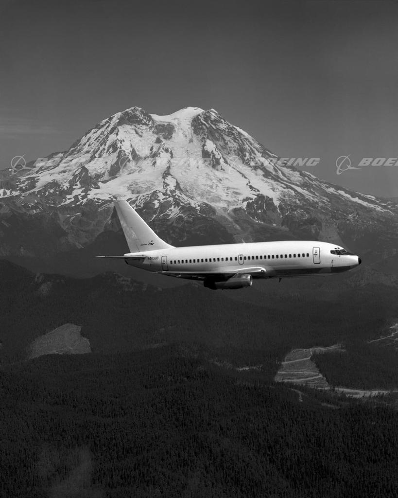 Unpainted 737-500 in Flight Above Mt. Rainier