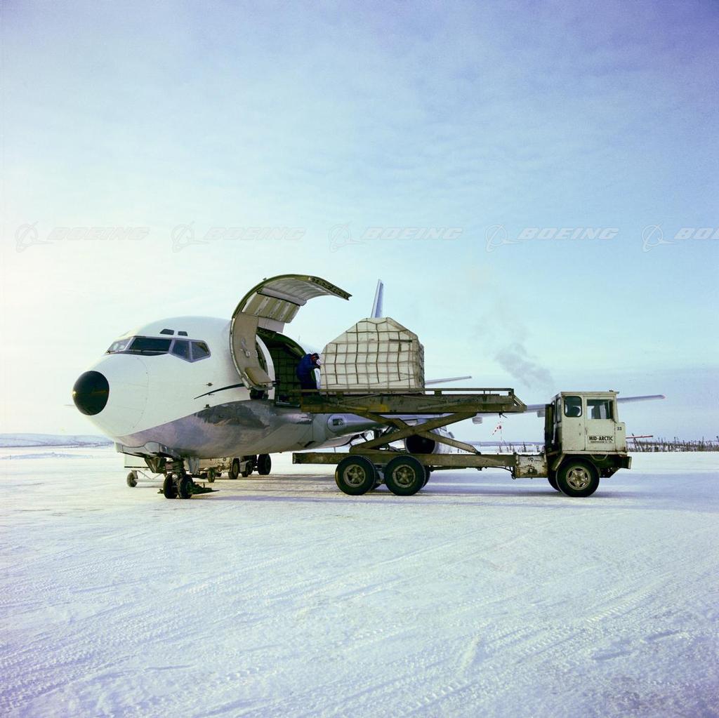 The 737-200C is s a combination cargo passenger plane. The front half can accommodate 3 large shipping containers, and the back half is equipped with seats for passengers.
