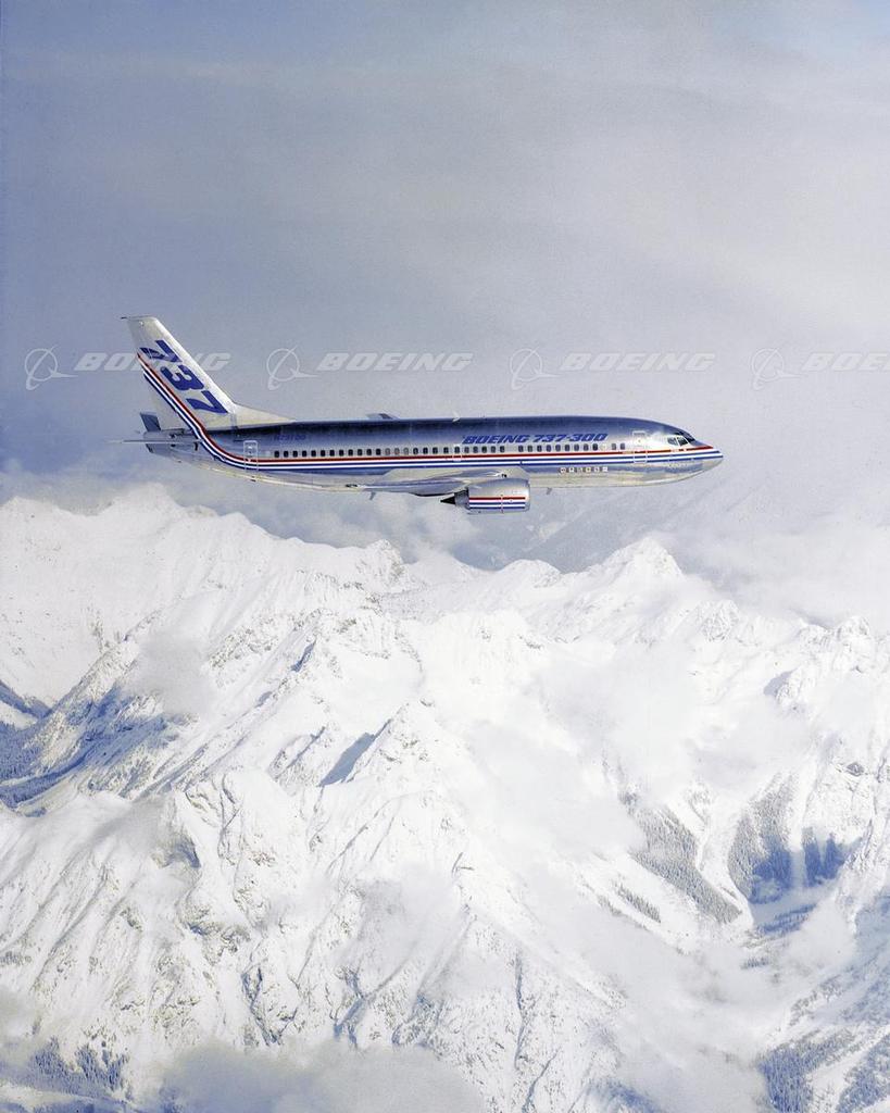 The most obvious difference between the 737-300 and the 737-200 it was designed to replace is the engine. On the -300, the larger high-bypass ration engines are mounted forward of the wing on struts instead of under the wing.
