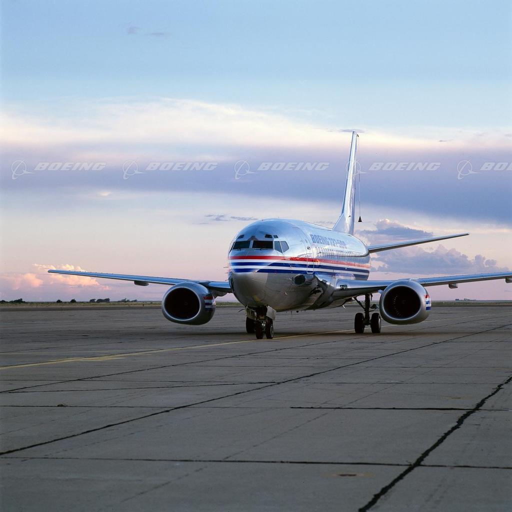 Development of the quieter, more fuel-efficient CFM56-3 series of engines allowed Boeing to improve its most popular jetliners and produce the advanced-technology 737-330, -400, and -500. The engines are larger and mounted forward of the wing struts instead of tucked directly under the wing as in the -100 and -200 versions. Advancements on the new-generation 737s included a stregthened wing to accomodate greater gross weight, tip extensions to the wings and horizontal stabilizers, and stregthened wheels, tires and brakes. The 737-200, -300, -400, -500 have the same handling characteristics so that pilots can use the same Type rating to fly all of them. Airlines' spares inventory and maintenance are simplified by making a substantial number of replaceable parts on the -300, -400, -500 identical to those used on the -200. The 737-400 is about 10 feet longer than the 737-300. It holds 19 more passengers and has a gross weight of up to 150,000 pounds, while retaining the same fuel efficiency, low noise, and low operating costs as its predecessor.