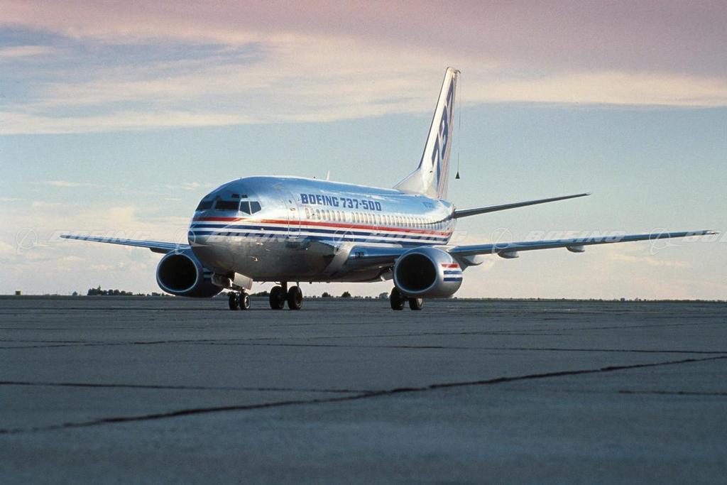 Although it has the largest model designator of its generation, the 737-500 is actually smaller than either the 737-300 or the 737-400. The 737-500 is 101 ft 9 in long and can seat up to 132 passengers in an all-economy configuration. It was built to replace the 737-200. About the same size as the 737-200, it is the smallest member of the 737 family, but uses all the advanced technologies of the larger 737-300 and 737-400 models. The 737 family of jets share the reliability, simplicity, family commonality, and low maintenance costs that have made the 737 the favorite of the world's airlines.