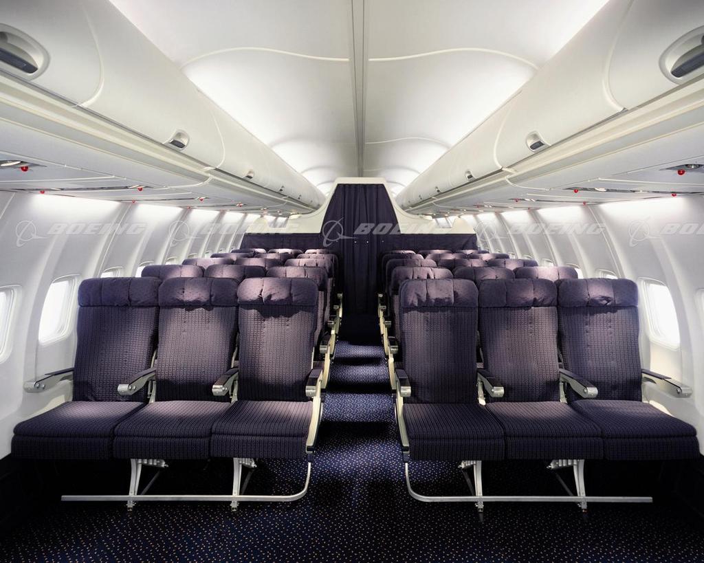 Boeing 737 Next Generation airplanes have a cabin that is both durable and flexible. The interior floor, wall and seat materials stand up to wear and tear, and can be easily cleaned. Optional, convertible seats make it possible to quickly change the passenger cabin to accommodate a variety of airline seat configuration requirements.