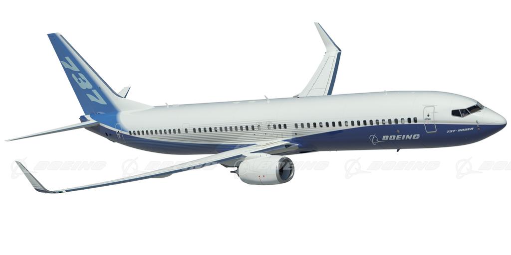 The Next-Generation 737-900ER (Extended Range) is the latest member of the 737 airplane family, the world's best-selling jetliner family. Aerodynamic and structural design changes such as an additional pair of exit doors and a flat rear pressure bulkhead increase interior volume. The airplane is capable of carrying up to 180 passengers in a two-class layout and is certified for up to 220 passengers in a one-class layout.