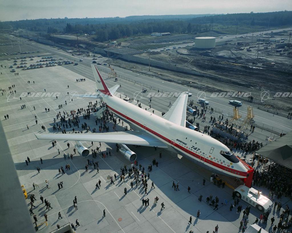 On May 15, 1998, Boeing celebrated the 2,000th 7-series widebody to be built. Boeing builds all three 7-series widebodies the 747, 767 and 777 at its factory in Everett, Wash. The milestone jet a 747-400 was delivered to British Airways. The world's first commercial widebody was the Boeing 747-100, shown here at the rollout ceremony on Sept. 30, 1968. Boeing donated the first 747 to Seattle's Museum of Flight. On lease to Boeing, the airplane often is used as a flying test airplane for aeronautical developments. Nearly 120 customers worldwide have ordered more than 2,500 of the 7-series widebody jets, of which Boeing has delivered nearly 2,000.