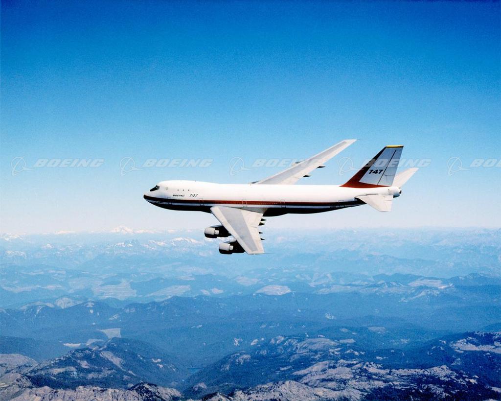747-100 Painted as a 747-200 Flies over Snowy Mountains
