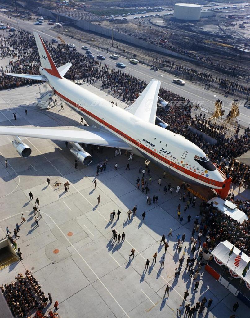 On September 30, 1968 the first Boeing 747-100 was rolled out during ceremonies at the new assembly facility in Everett.