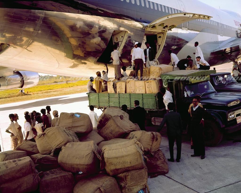 747-400F in New Boeing Livery Loading Cargo Through Nose