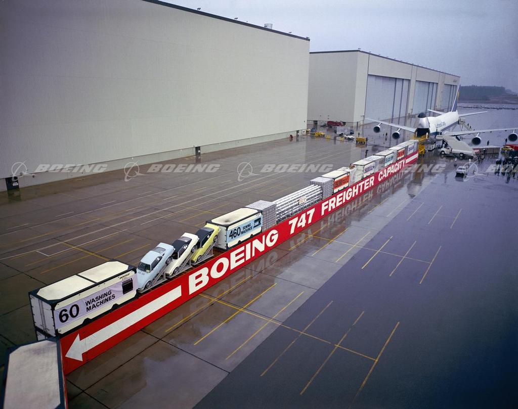 The cross-section of 747 Freighters is optimized to carry the maximum amount of cargo with the minimum amount of container weight. The industry-standard 10-ft-high (3.1 m) pallets accommodated by all 747F large side cargo doors make efficient use of the airplane's volume capability.