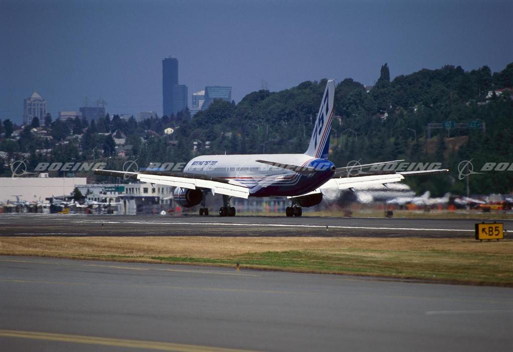 The twin-engine, medium-range Boeing 757 commercial transport first flew Feb. 19, 1982 and was up to 20 percent more fuel efficient than the 727s it was designed to replace. The 757-200, also offered as a freighter, can carry 239 passengers, in two classes, up to 4,520 miles. In September 1996, Boeing launched the 4,000-mile-range 757-300, a stretched model that seats from 243 to 279 passengers. In 18 years of operation, the 757 has carried more than 1.3 billion passengers, more than four times the population of the United States and Canada combined and has flown the equivalent of nearly 25,000 roundtrips between the Earth and the Moon.