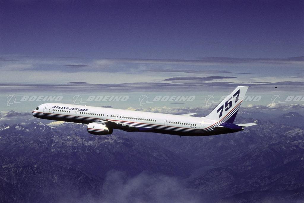 The Boeing 757-300, member of the popular 757/767 family of medium-sized airplanes. The 757-300 is a stretched version of the 757-200, measuring 23 feet 4 inches (7.1 meters) longer. The extra length allows it to carry 20 percent more passengers than the 757-200 and increases the available cargo volume by nearly 50 percent.