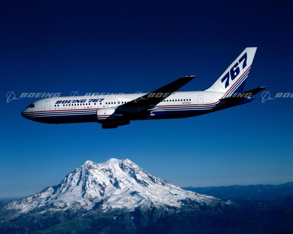 767-200 Flies Above Mt. St. Helens and Mt. Rainier