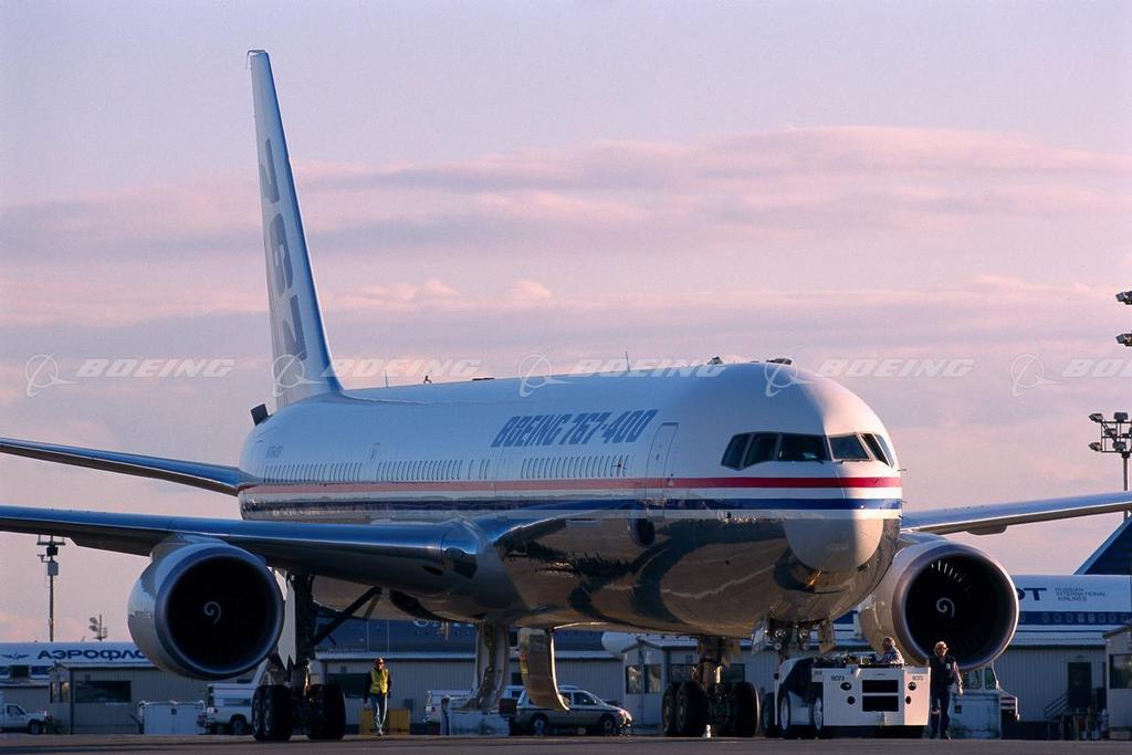 The 767-400ER brings significant improvements in operating economics over competing airplanes in the 240- to 300-seat market. The payload capability, intercontinental range, passenger comfort and commonality with other Boeing jetliners give this airplane strong market appeal. Sized between the Boeing 767-300ER and the Boeing 777-200, the 767-400ER features a lengthened fuselage; aerodynamic improvements, increased takeoff weight capability; and an all-new main landing gear. It is designed to be the most efficient airplane in its size category. Efficient design gives the higher-capacity 767-400ER excellent range capability (approximately 5,645 nautical miles or 10,454 km) to fly about 99 percent of the routes currently being served by airplanes in this size category. The 767-400ER features new, highly back-swept (raked) wing-tip extensions that increase the 767's 156-foot wingspan to 170 feet, 4 inches (51.9 m) designed to increase the aerodynamic efficiency of the wing. This efficiency of design and economy of structure affords the 767-400ER more gate and taxiway flexibility. It can use the same gates as the DC-10-30, MD-11 and L-1011, unlike the A330-200, which must use gates sized by the industry for large airplanes such as the 747 and 777. The 767-400ER interiors have adopted the architectural lines of the award-winning 777 interior. Newly sculpted sidewalls, ceilings and stow bins enhance the wide, open feeling passengers prefer.