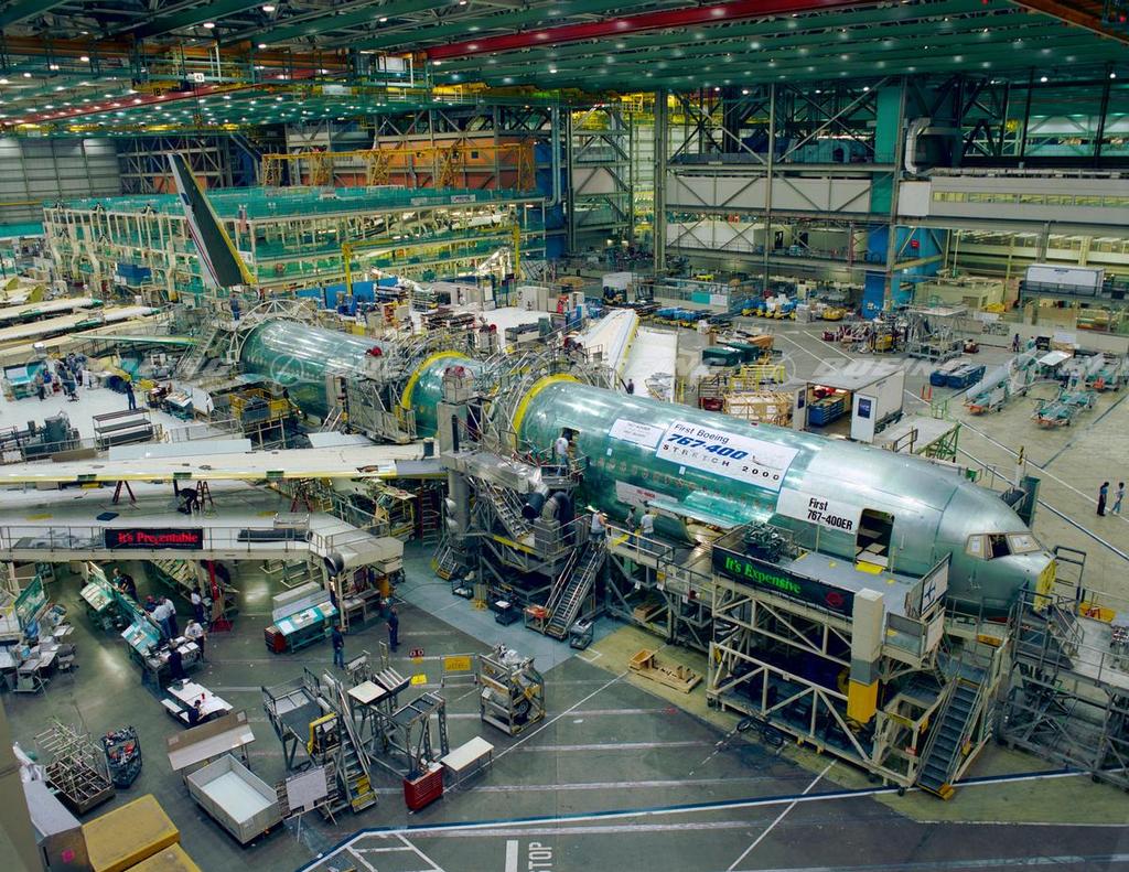 Each 767 has more than three million parts which are ordered, tracked and installed at Boeing's largest assembly facility in Everett, WA. In March 2002, the 767 manufacturing program converted to a moving line system, replacing the old station to station method of assembly pictured here.