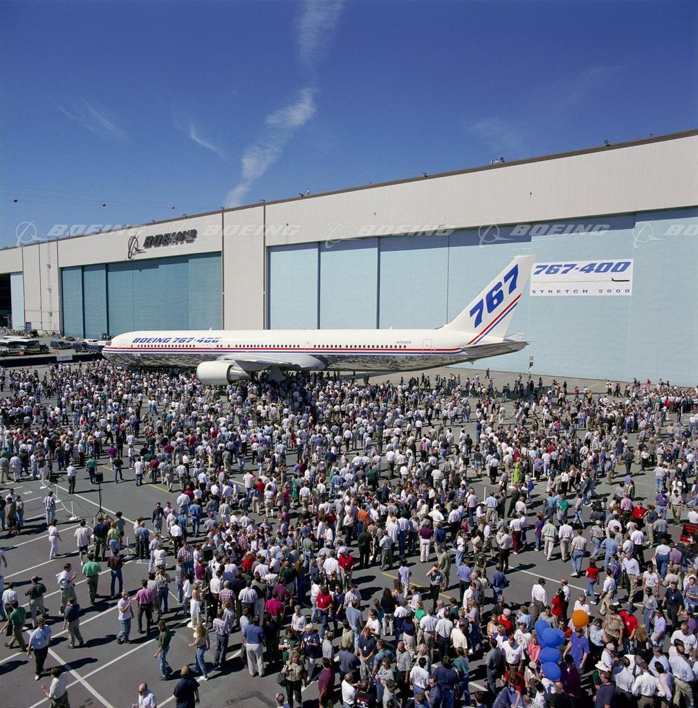 On Aug. 26, 1999, the first new jetliner scheduled for airline delivery in the 21st century made its formal debut during an employee celebration as the 767-400ER airplane rolled out of the Boeing factory in Everett, Washington. An estimated 2,000 employees were invited to come forward to see and touch the new jetliner.