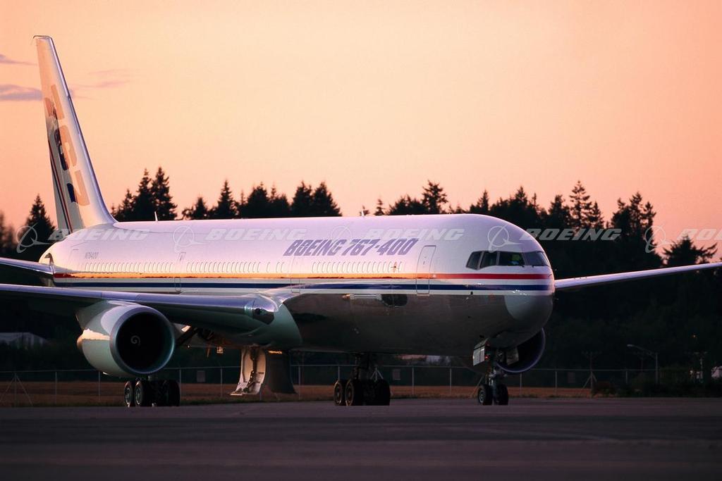 767-400ER on Tarmac at Sunset