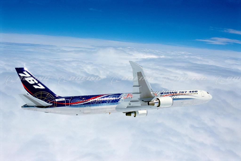 The Boeing 767-400ER with its all-new 777-style interior, new flight deck and innovative raked wing tips is the first new airplane to be introduced in the 21st century. The 767-400ER begins a world tour July 10, 2000 to 17 cities on three continents, and will be on display at the Farnborough Air Show in England from July 24-30. The airplane has a distinctive look, both inside and out, featuring illustrations from Greek mythology and drawings by Leonardo da Vinci. On its fuselage are the words "Leading the Way." These words were chosen because of the airplane's role in leading the way in technical innovation, market development, market preference, and passenger comfort.