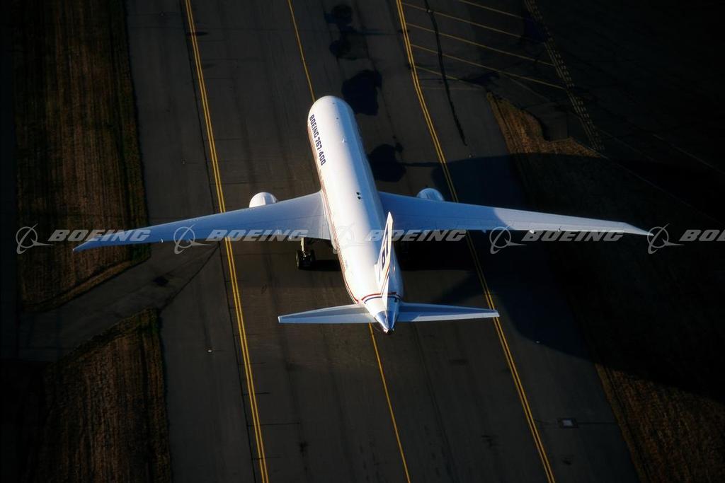 The 767-400ER brings significant improvements in operating economics over competing airplanes in the 240- to 300-seat market. The payload capability, intercontinental range, passenger comfort and commonality with other Boeing jetliners give this airplane strong market appeal. Sized between the Boeing 767-300ER and the Boeing 777-200, the 767-400ER features a lengthened fuselage; aerodynamic improvements, increased takeoff weight capability; and an all-new main landing gear. It is designed to be the most efficient airplane in its size category. Efficient design gives the higher-capacity 767-400ER excellent range capability (approximately 5,645 nautical miles or 10,454 km) to fly about 99 percent of the routes currently being served by airplanes in this size category. The 767-400ER features new, highly back-swept (raked) wing-tip extensions that increase the 767's 156-foot wingspan to 170 feet, 4 inches (51.9 m) designed to increase the aerodynamic efficiency of the wing. This efficiency of design and economy of structure affords the 767-400ER more gate and taxiway flexibility. It can use the same gates as the DC-10-30, MD-11 and L-1011, unlike the A330-200, which must use gates sized by the industry for large airplanes such as the 747 and 777. The 767-400ER interiors have adopted the architectural lines of the award-winning 777 interior. Newly sculpted sidewalls, ceilings and stow bins enhance the wide, open feeling passengers prefer.