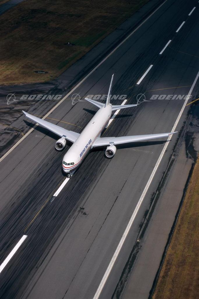 The 767-400ER brings significant improvements in operating economics over competing airplanes in the 240- to 300-seat market. The payload capability, intercontinental range, passenger comfort and commonality with other Boeing jetliners give this airplane strong market appeal. Sized between the Boeing 767-300ER and the Boeing 777-200, the 767-400ER features a lengthened fuselage; aerodynamic improvements, increased takeoff weight capability; and an all-new main landing gear. It is designed to be the most efficient airplane in its size category. Efficient design gives the higher-capacity 767-400ER excellent range capability (approximately 5,645 nautical miles or 10,454 km) to fly about 99 percent of the routes currently being served by airplanes in this size category. The 767-400ER features new, highly back-swept (raked) wing-tip extensions that increase the 767's 156-foot wingspan to 170 feet, 4 inches (51.9 m) designed to increase the aerodynamic efficiency of the wing. This efficiency of design and economy of structure affords the 767-400ER more gate and taxiway flexibility. It can use the same gates as the DC-10-30, MD-11 and L-1011, unlike the A330-200, which must use gates sized by the industry for large airplanes such as the 747 and 777. The 767-400ER interiors have adopted the architectural lines of the award-winning 777 interior. Newly sculpted sidewalls, ceilings and stow bins enhance the wide, open feeling passengers prefer.