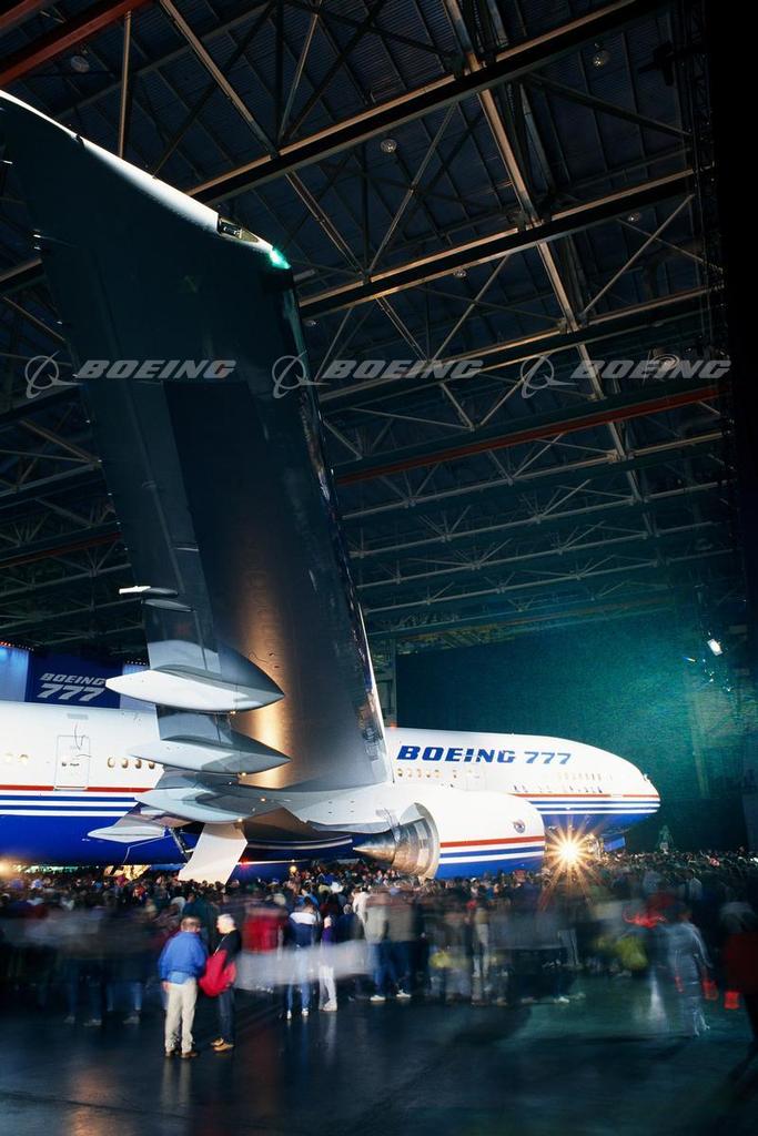 Ceremonial rollout of the first 777. Boeing unveiled the first 777 to approximately 100,000 employees and their guests, customers and suppliers.
