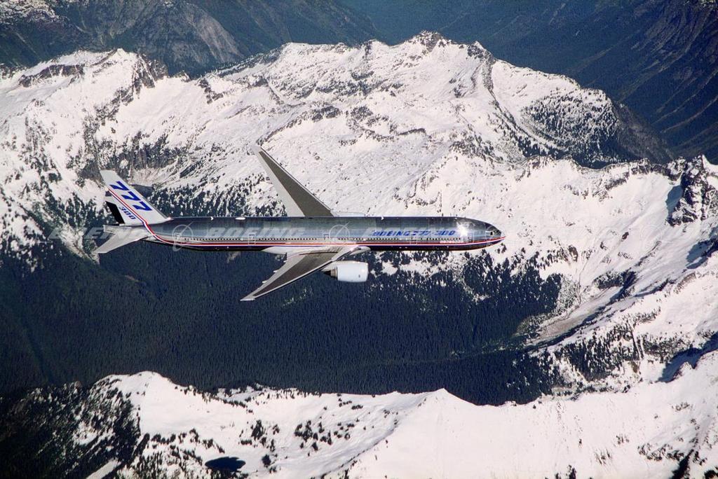 The wide-body Model 777 was the first commercial jet that was 100 percent digitally designed using three-dimensional solids technology. It earned the Collier Trophy for top aeronautical achievement in 1996. The twinjet commercial transport uses fuel efficiently, and its comfortable cabin is very popular with passengers. The 777-200 can take 305 passengers 5,995 miles. The 777-300 can carry 368 passengers 6,899 miles. Launched in February 2000, the 777-200LR and 777-300ER will fly 9,420 or 7,880 nautical miles, respectively.