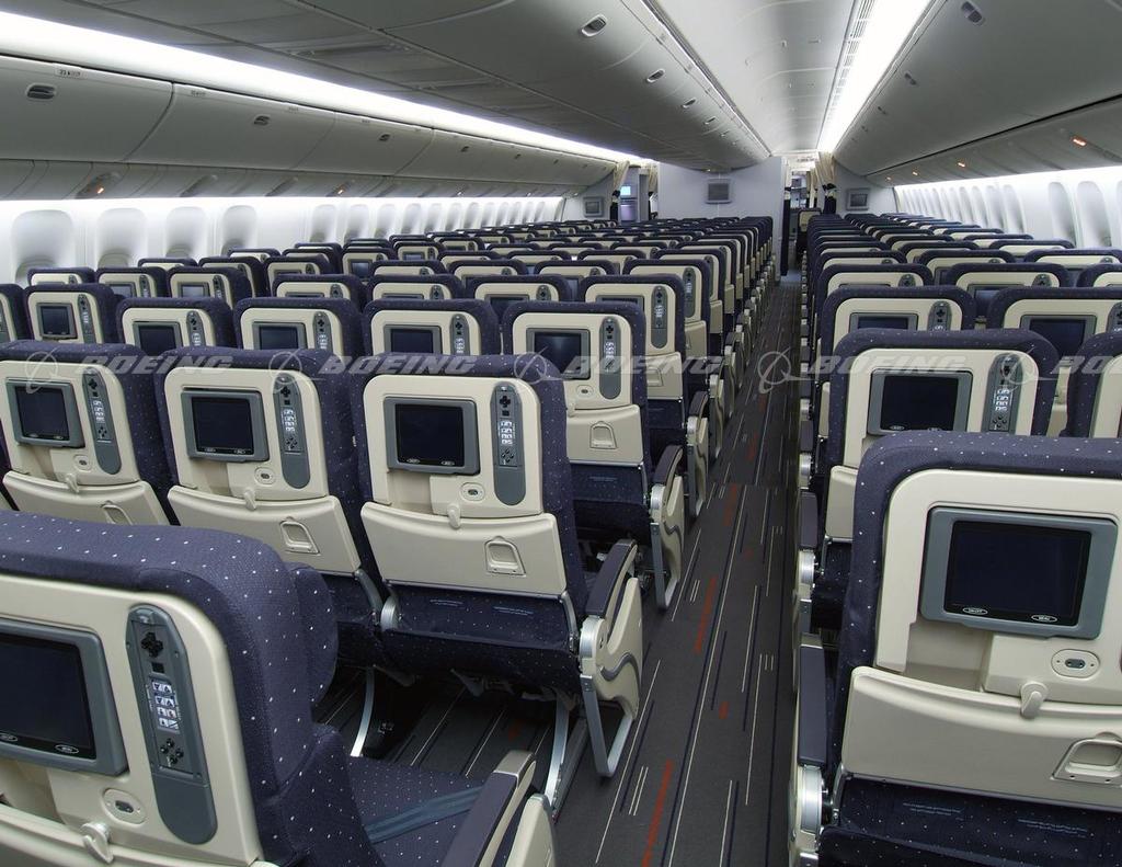 The 777 was designed especially for comfort on longer flights. The 777 is 30.9 inches (78.4 centimers) wider than its Airbus counterpart, the A330/340. This extra elbowroom makes the 777 the widest airplane in its class, allowing for roomier aisles and seats. Although individual airline customers choose seating configurations, once an interior is configured, the extra width makes a difference in coach, business, and economy classes. When airlines opt to seat nine abreast in economy class, for example, the seats can be 18 1/2 inches (46.99 centimeters) wide - the widest in the industry. In business class, seating can accommodate 20-inch (50.8 centimeter) wide seats, the same size as first-class seats on many competing airplanes.
