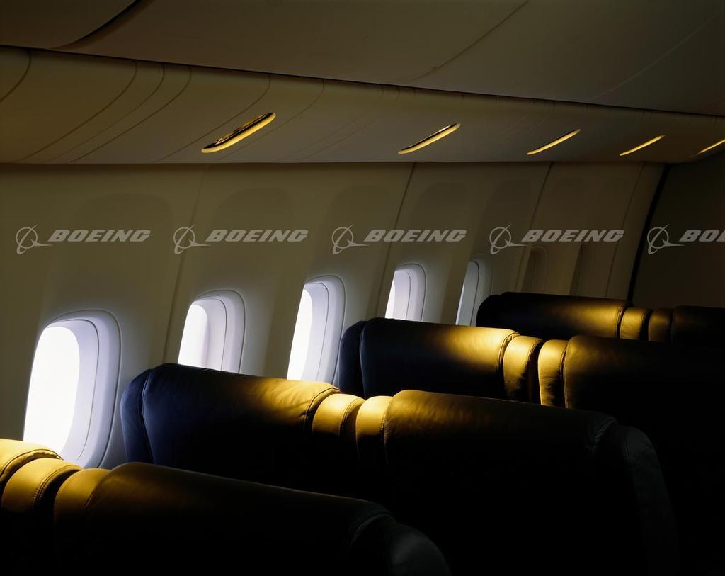 The wide 777 cabin gives more head room for every passenger and more shoulder room for those sitting at windows in all three seating classes. Stowage bins tuck high and out of the way when closed but swing down to easy reach when open.
