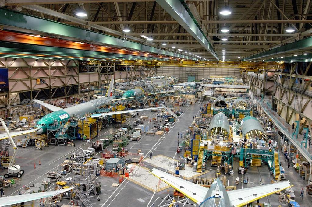 In 2006 The Boeing Company started using a moving assembly line for the first time to build its market-leading 777 jetliner. For now, the moving assembly line is used only during final assembly positions for the airplane, moving it at a steady pace of 1.6 inches per minute during production. To make its 777 assembly line move during final assembly, Boeing uses a tug that attaches around the front landing gear of the airplane and pulls it forward. The tug has an optical sensor that follows a white line along the floor. Boeing intends to complete a continuous, one-bay moving assembly line for the 777, which will include systems installation, final body join and final assembly for the airplane, sometime in 2008. This will be the most extensive moving production line used to build a commercial airplane.