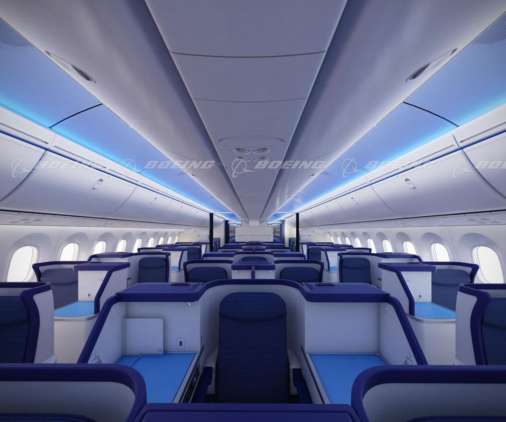 There is more personal space in the 787 Dreamliner cabin, both physically and visually. The cabin cross section was designed around passengers, with ample room not only at armrest height, but also at shoulder and seated-eye height.