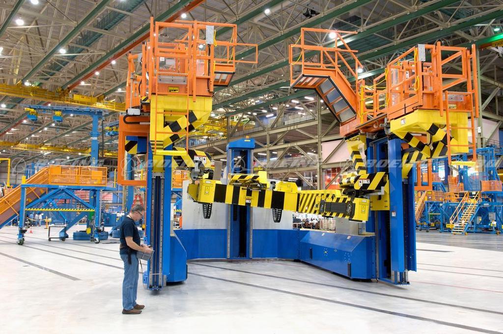 The 787 production system was designed using Lean manufacturing techniques in a simplified final assembly process. Portable tools, designed with ergonomics in mind, move the assemblies into place. No overhead cranes are used to move airplane structure.