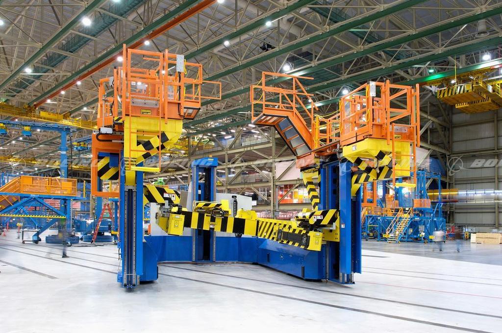 Because the 787 is assembled from large assemblies rather than many smaller pieces, traditional monument assembly tools are not necessary. Portable tools, designed with ergonomics in mind, move the assemblies into place. No overhead cranes are used to move airplane structure.