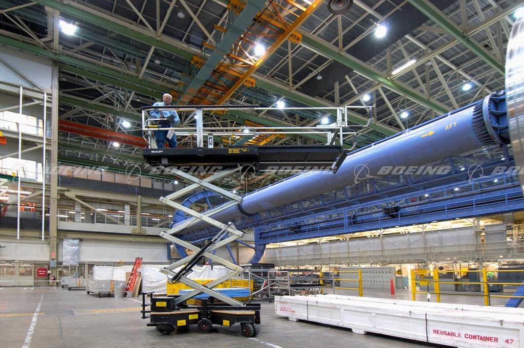 787 Line Moving Assembly Equipment with Boeing Worker