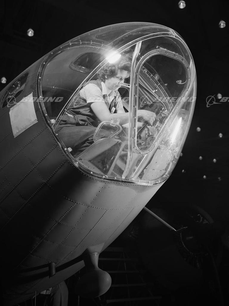 A Douglas "Rosie" in Long Beach Rivets a Boeing B-17 Tail