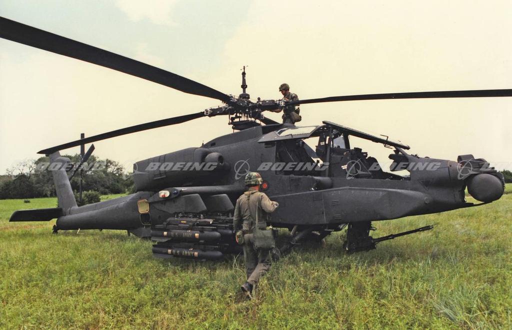 U. S. Army soldiers ready an AH-64A Apache for a day’s flying from a remote location.
