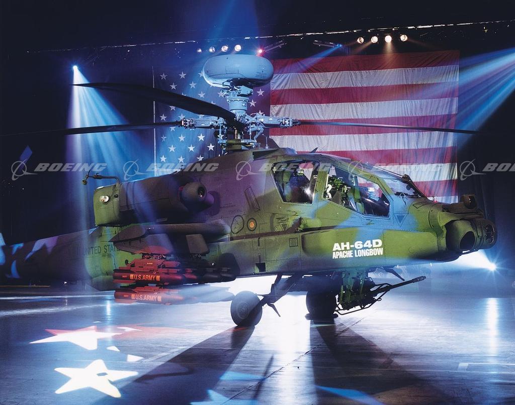 ROLL OUT -- The first production AH-64D Apache Longbow multi-mission combat helicopter debuted March 21 at Boeing in Mesa, Ariz.