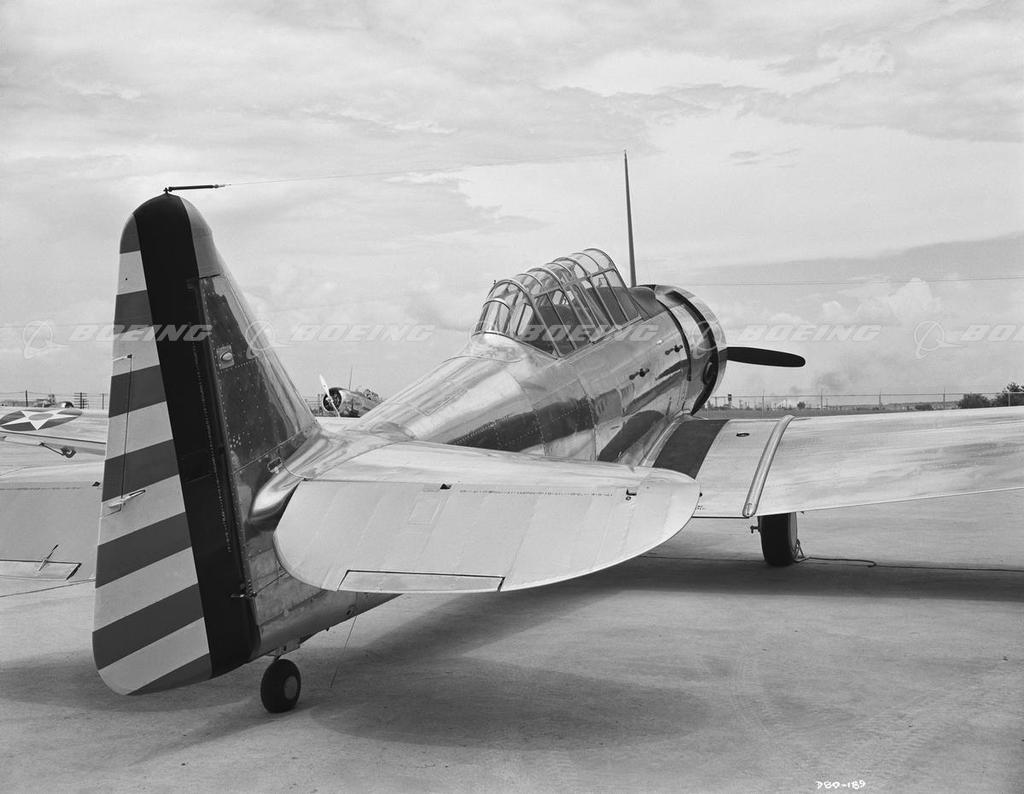 The rugged AT-6 Texan (Harvard) trainers served with American military services for 25 years and in more than 30 other countries. North American Aviation built more than 15,800 Texans and SNJs (the Navy version), beginning in 1938 with the first NA-49 Harvard for the British Royal Air Force. They began delivering the AT-6 to the U.S. Army Air Corps on Feb. 10, 1940. With a wingspan of 42 feet, the trainers, powered by a 550-horsepower engine, could fly 205 mph.