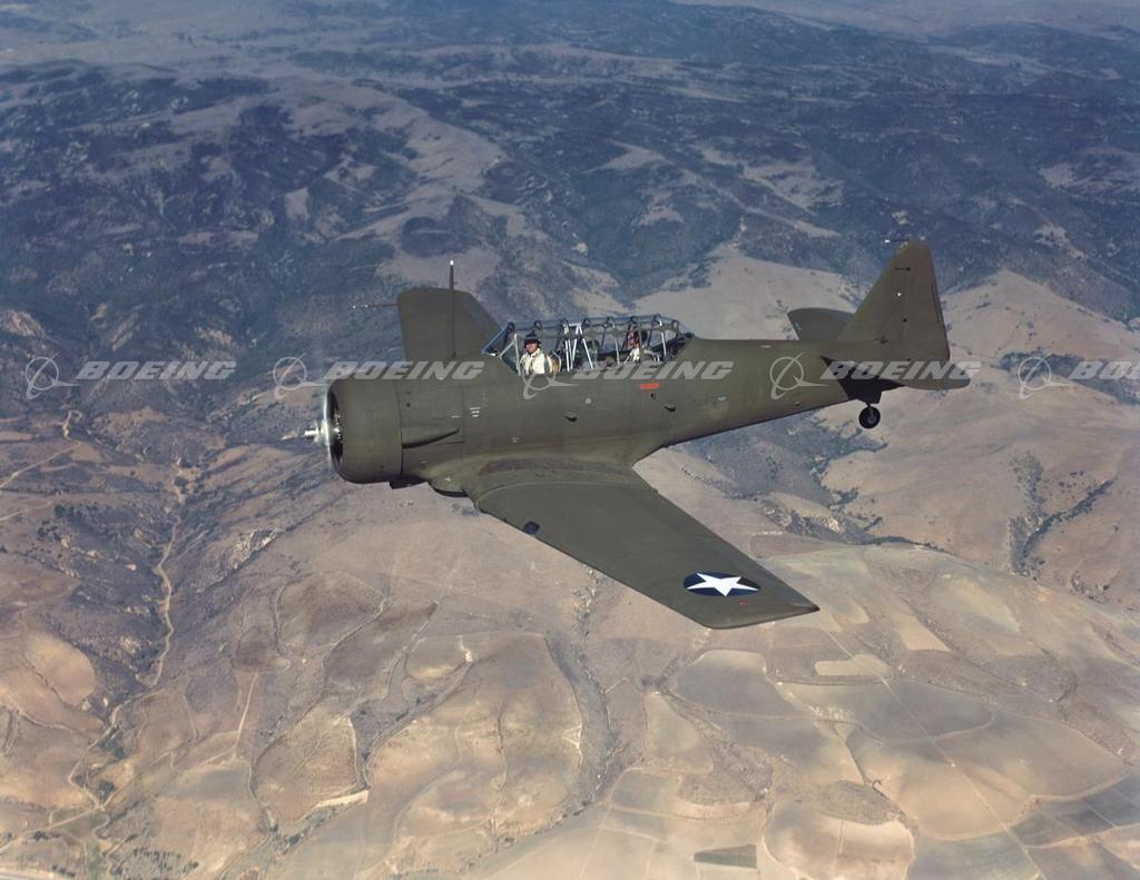The rugged AT-6 Texan (Harvard) trainers served with American military services for 25 years and in more than 30 other countries. North American Aviation built more than 15,800 Texans and SNJs (the Navy version), beginning in 1938 with the first NA-49 Harvard for the British Royal Air Force. They began delivering the AT-6 to the U.S. Army Air Corps on Feb. 10, 1940. With a wingspan of 42 feet, the trainers, powered by a 550-horsepower engine, could fly 205 mph.