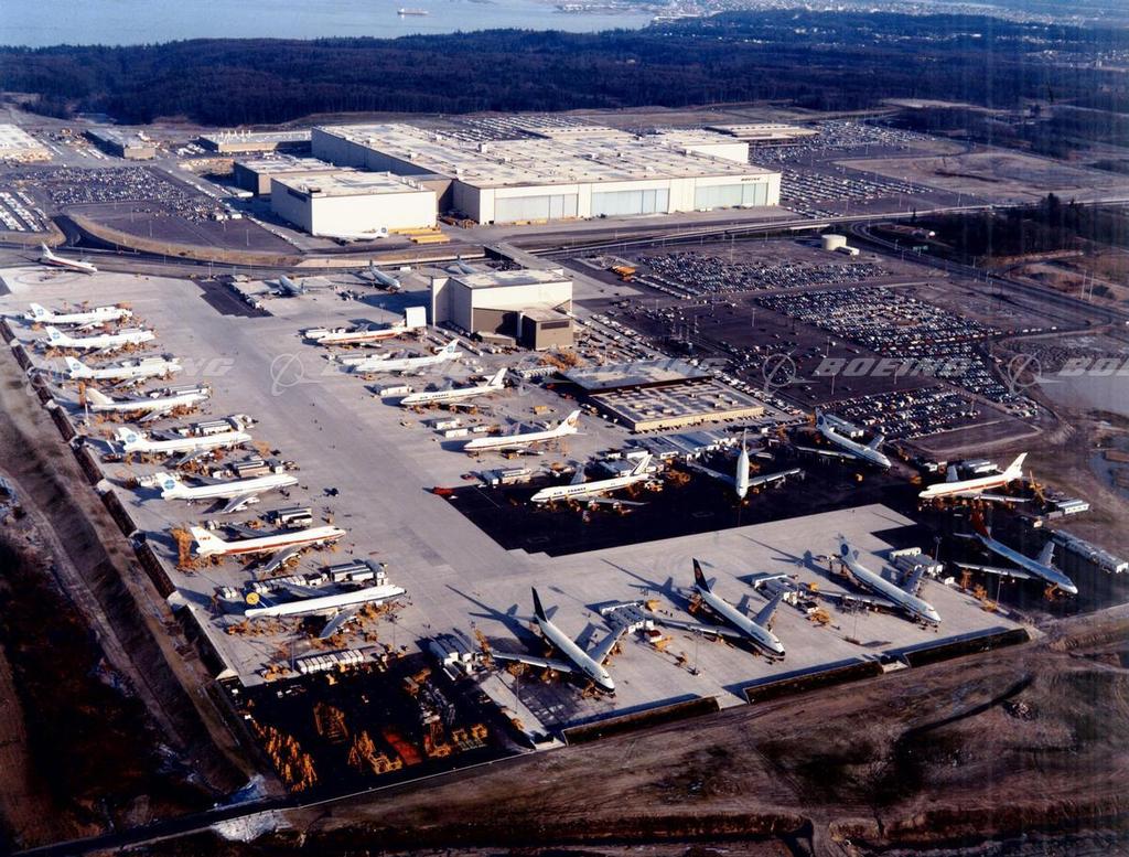 747-100s and 747-200s Parked Outside of Boeing's Everett Factory