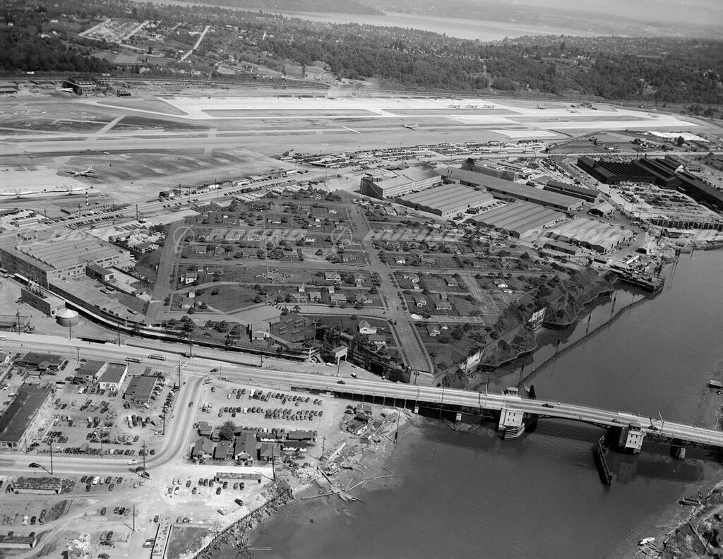 Aerial view of Boeing habitat restoration along Lower Duwamish River Waterway, Seattle, WA 01-2014